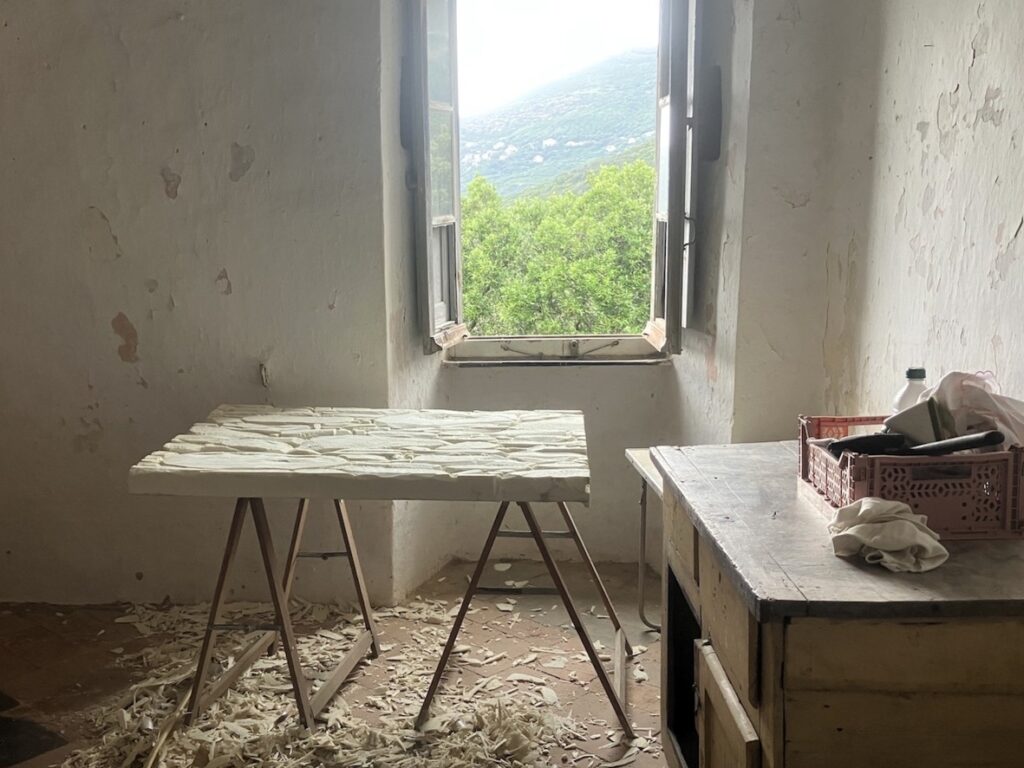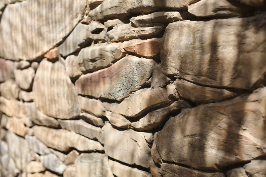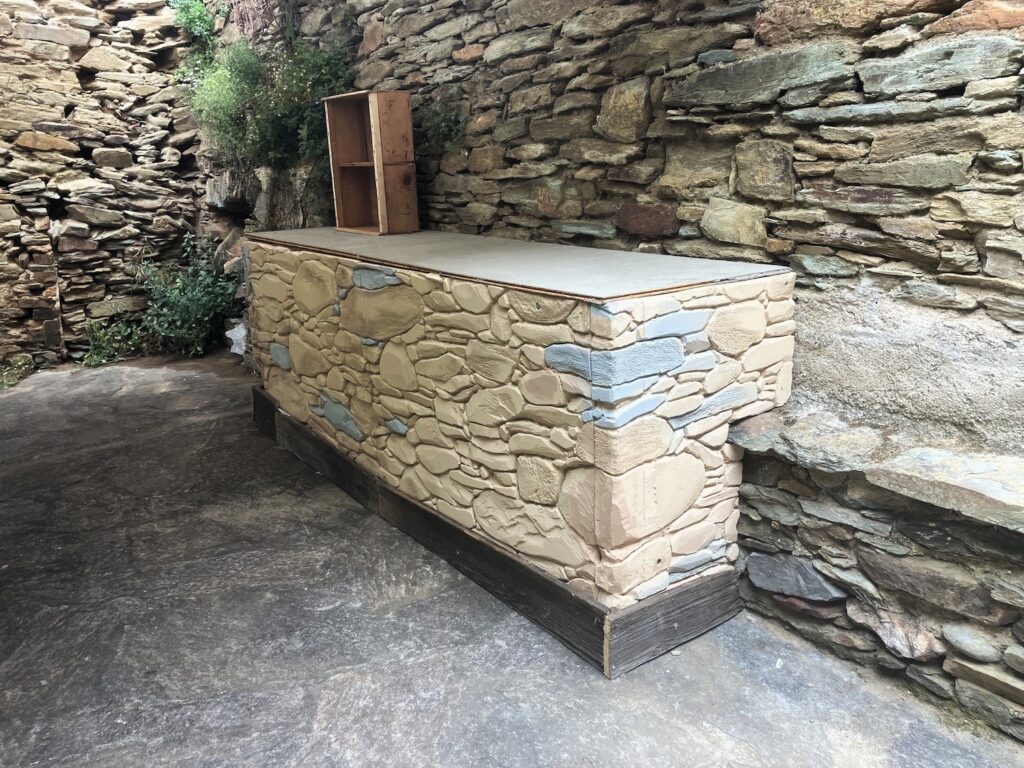 faux murs en pierres sèches pour plan de travail, sculpture sur polystyrène, enduit peinture et patines [2025]