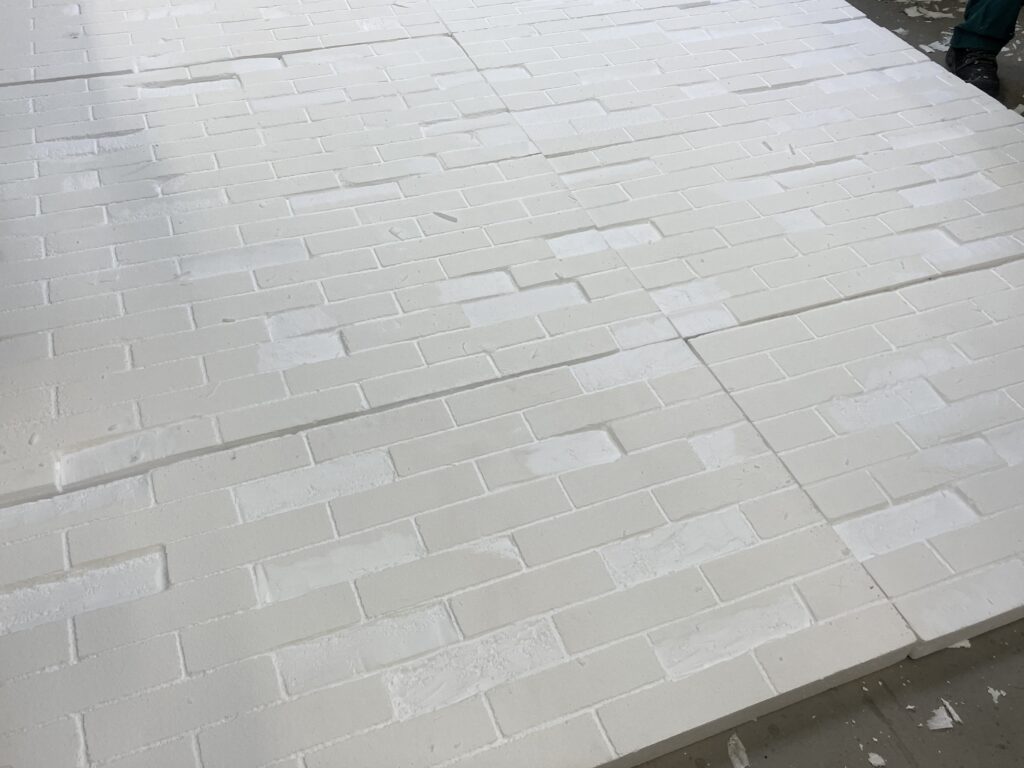 mur de fausses briques, scuplture sur polystyrène, enduits teintés dans la masse et patines [2025]