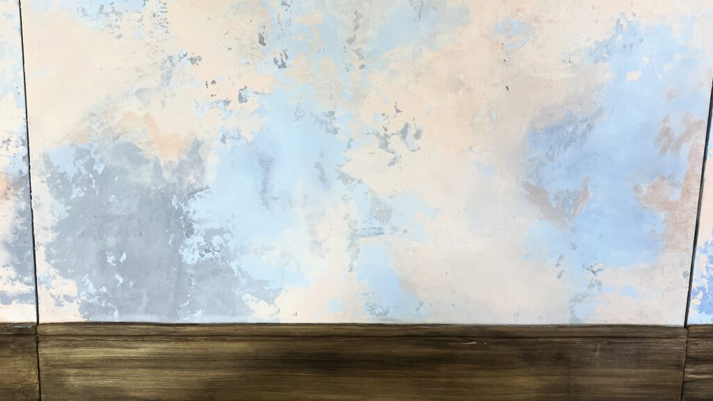 fresque style pompei sur support bois, base crépi et peinture fissuré [2025]