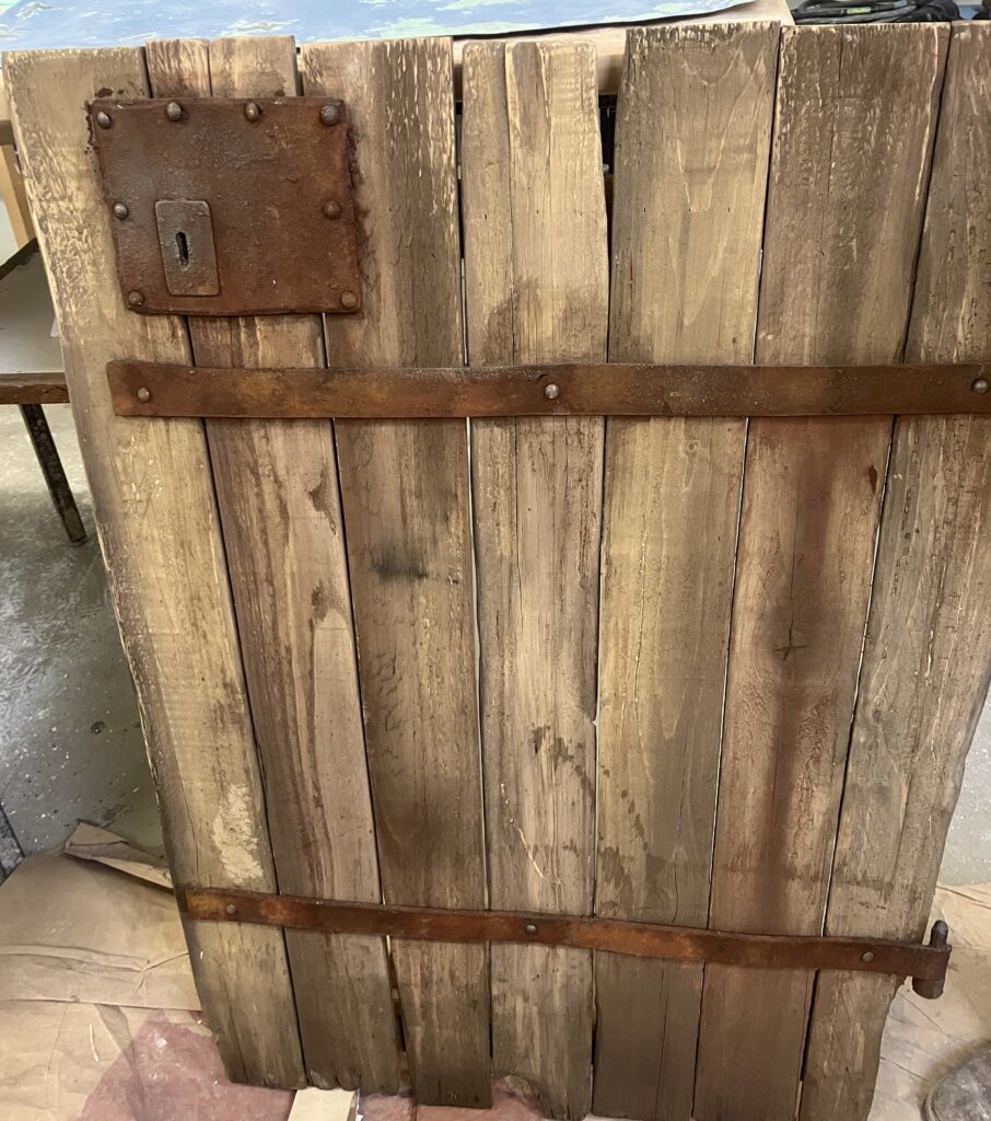 portail assemblage planchette de palette, feusse serrure et ferronerie en mousse thermoformable, patine et peinture craquelée [2025]